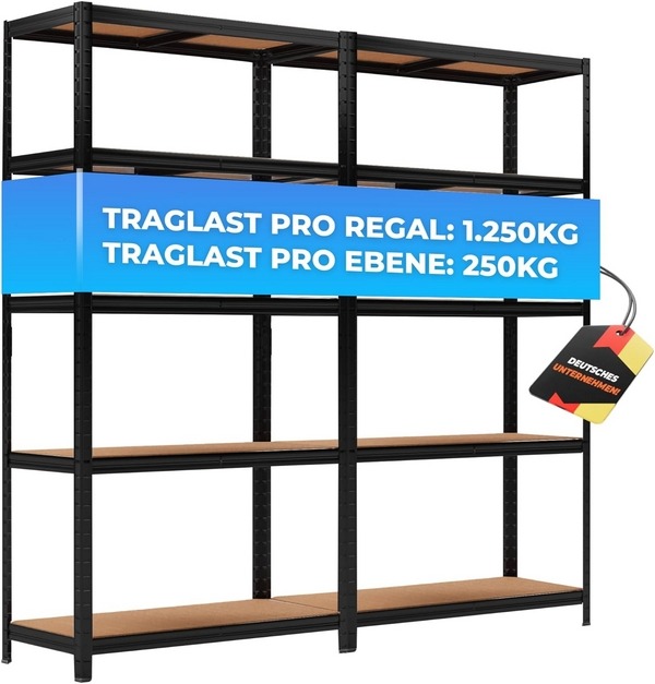 ALL Premium – Set mit 2 Schwerlastregalen 180x90x40 cm mit 5 Böden -Traglast 1250 kg je Regal.